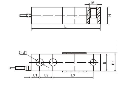Single shear beam, alloy steel, nickel-plated, adhesive-sealed, suitable for platform scales, hopper scales and other weighing devices. OUTLINE SIZE: