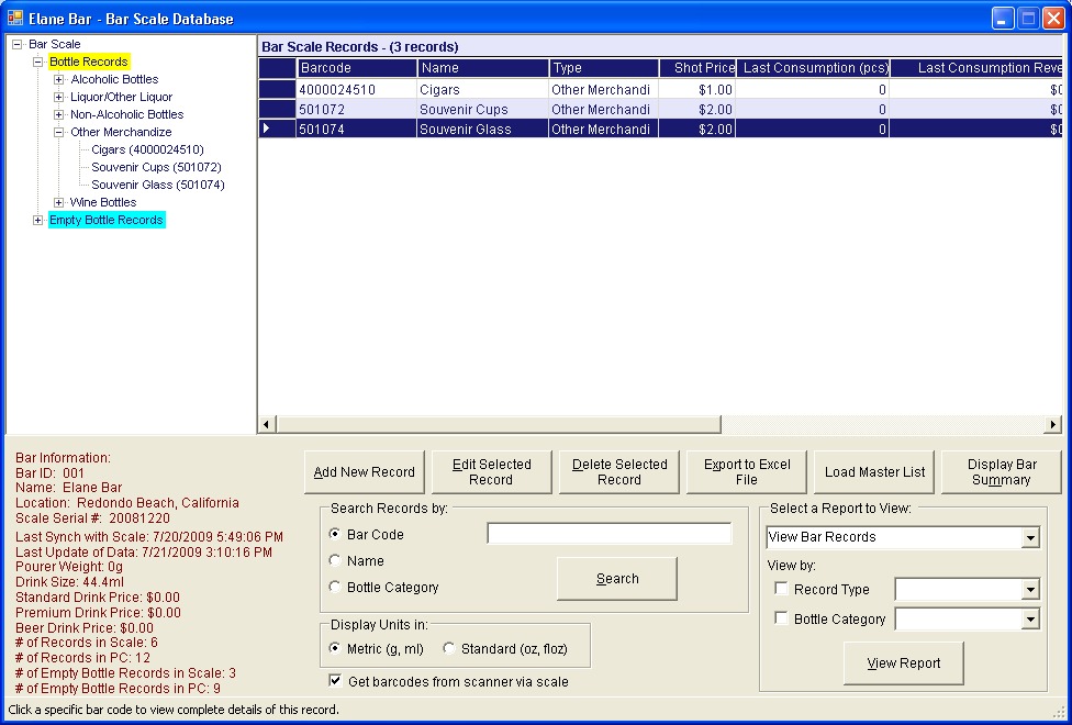 Bar Management System. The PC program can also be updated via the internet once newer version or more UPC/EAN data are from our data base. Multilingual Operation in: English, German, Spanish, French and Italian   - user selectable   (available end Sept 2008 or as Software update).